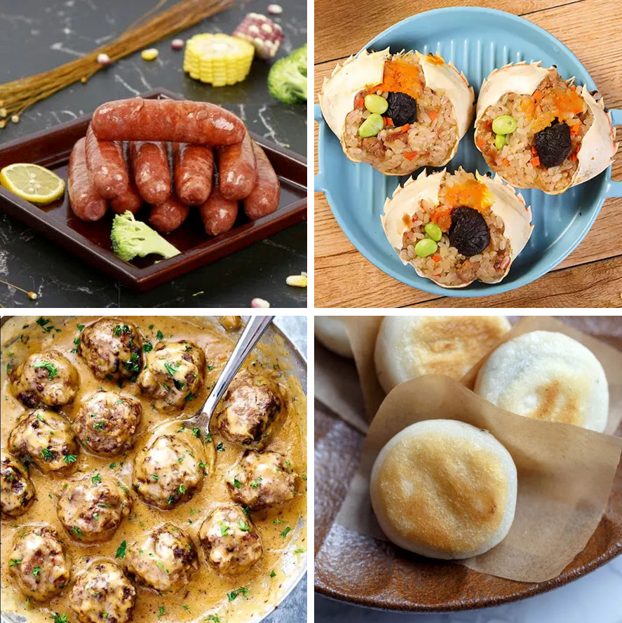 份量: 台灣香腸6條、八寶蟹蓋6件、蘑菇肉丸6粒、芝士年糕6件